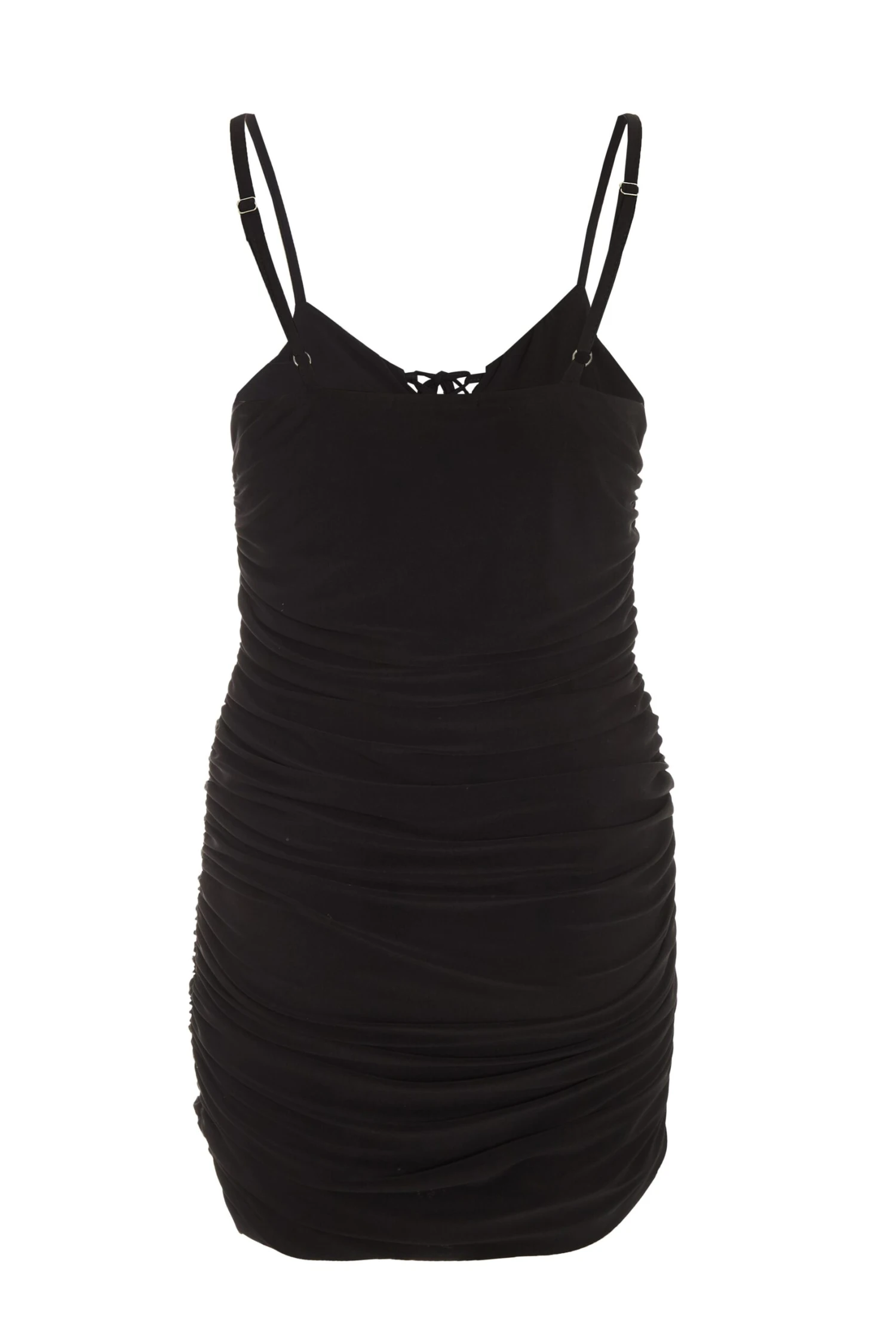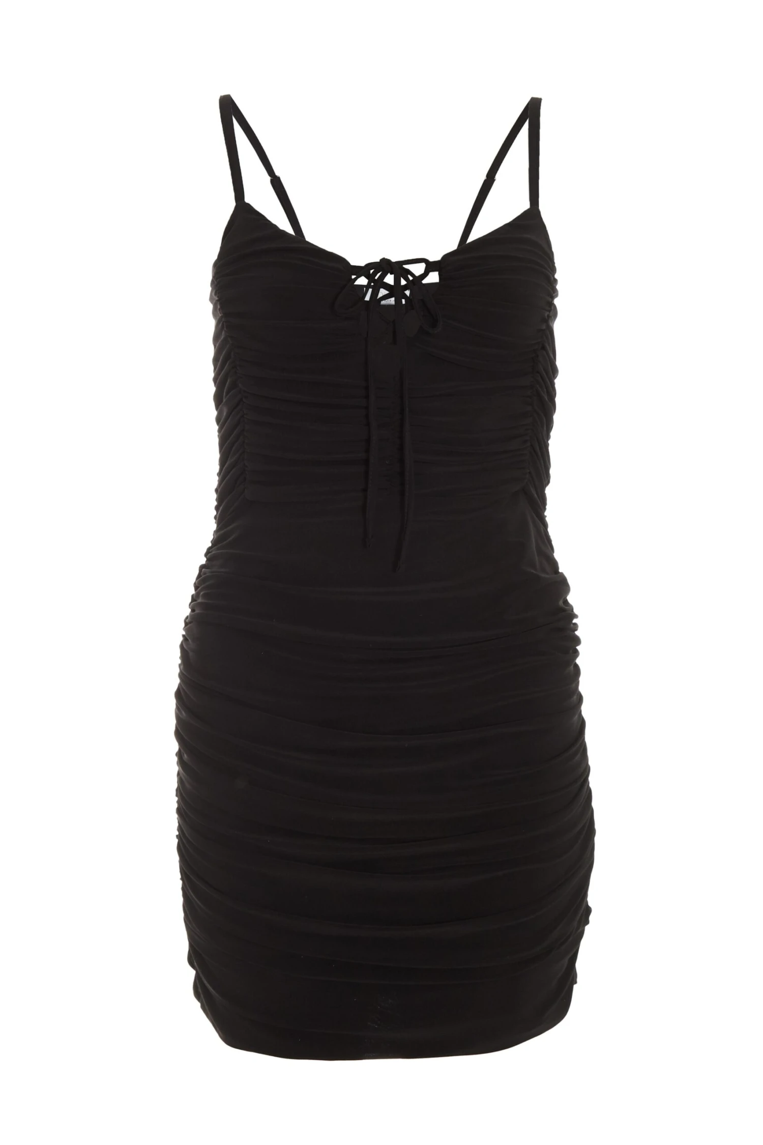 Black Tie Front Ruched Bodycon Mini Dress