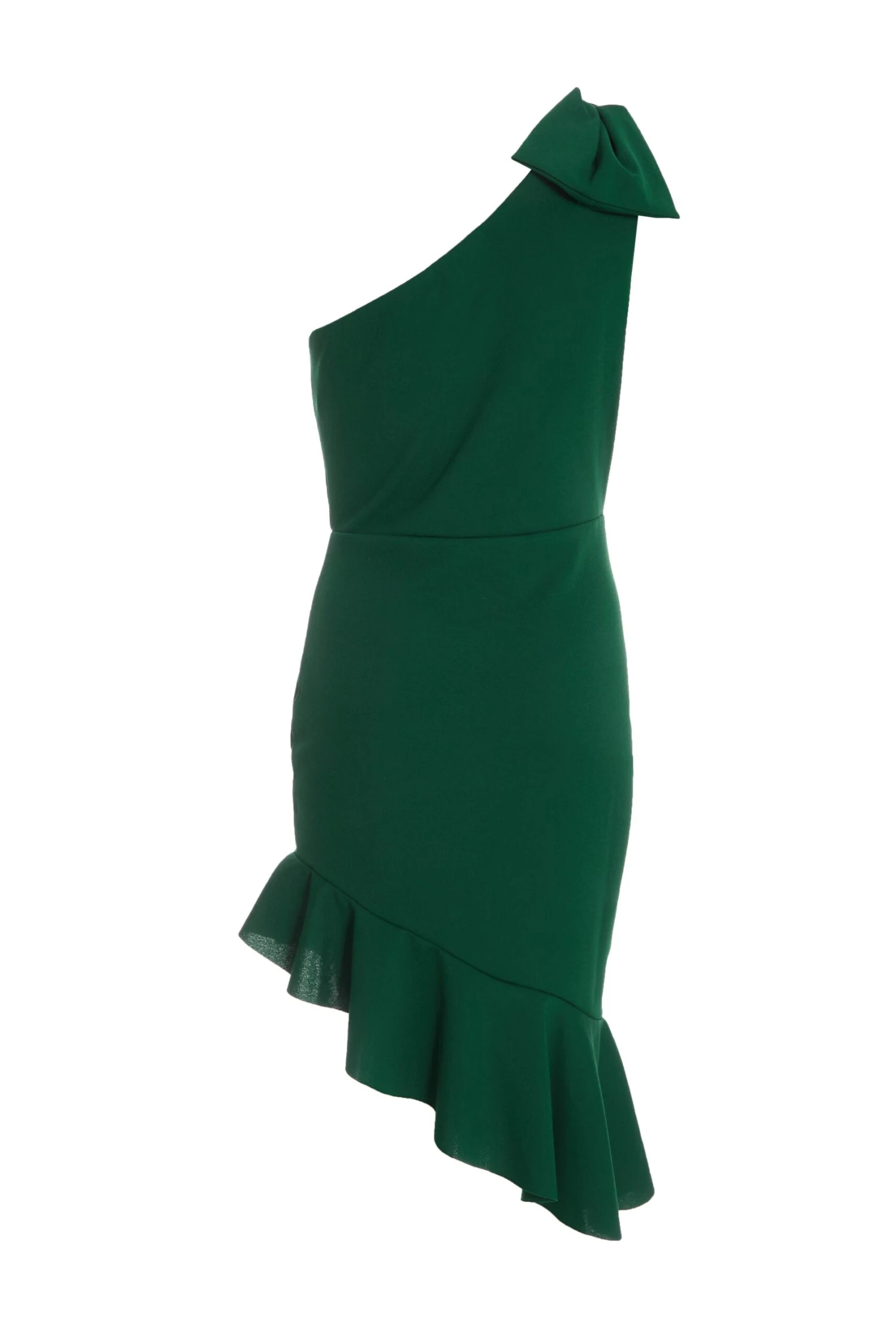 Bottle Green One Shoulder Bow Midi Dress