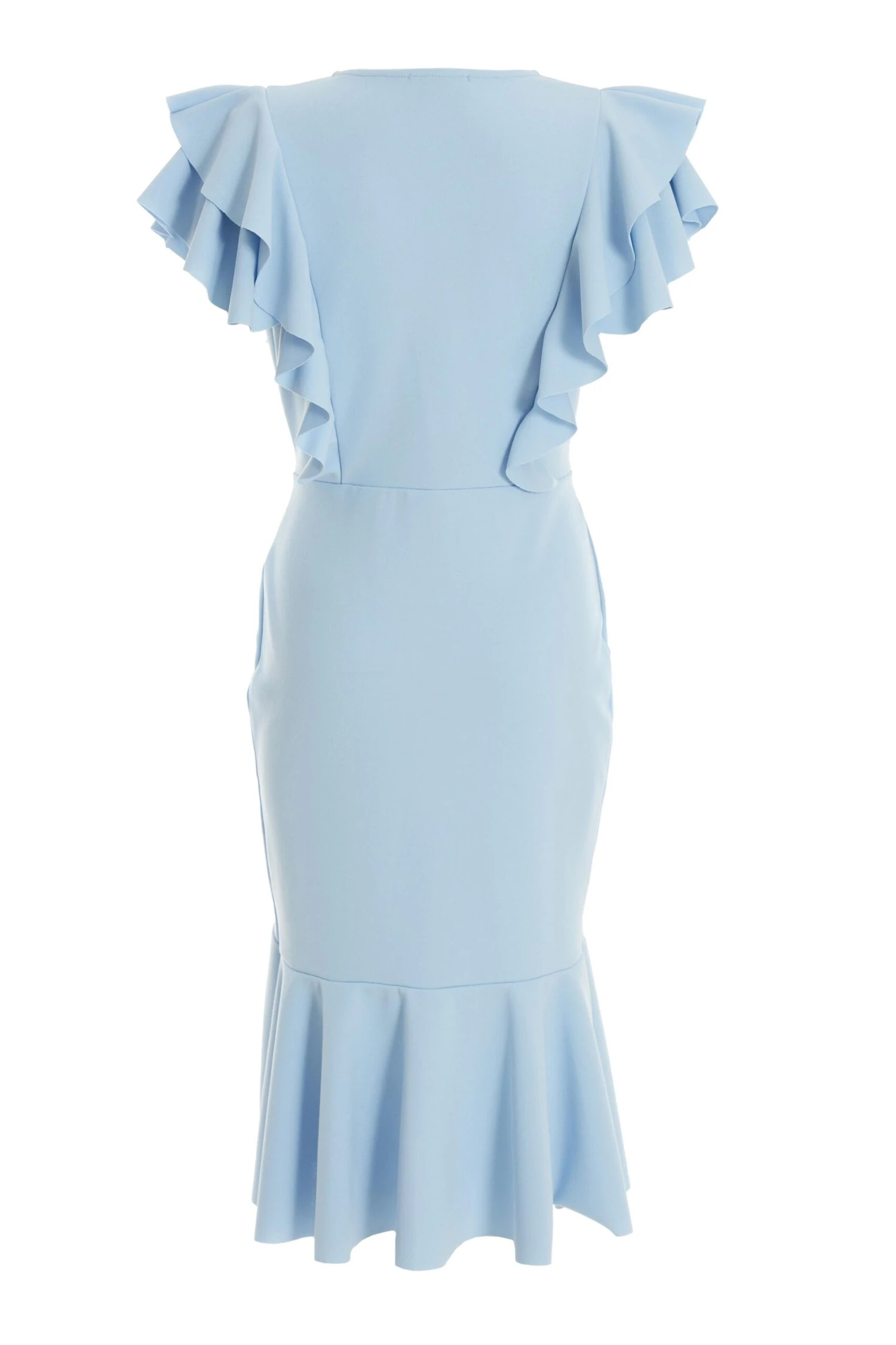 Light Blue Buckle Frill Midi Dress
